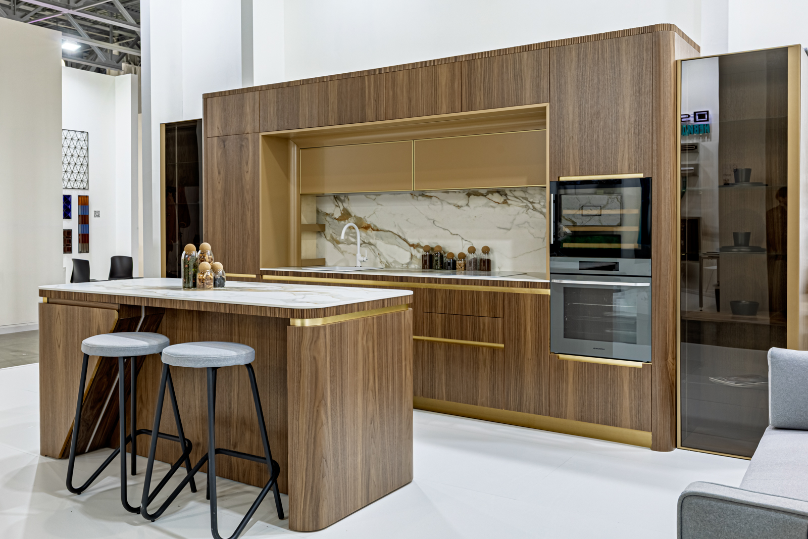 Опыт участия в выставке подтвердил, что мы чувствуем актуальные тренды, такие как использование закруглённых форм и гармоничных цветовых решений, что было высоко оценено посетителями. Наша модель кухни вдохновлена передовыми итальянскими производителями и демонстрирует нашу готовность к созданию мебели по индивидуальным заказам. Именно поэтому мы выбрали для экспозиции авторский зал.